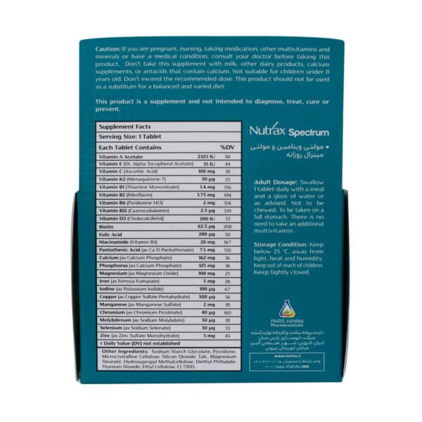روزانه 1 قرص مولتی ویتامین و مینرال روزانه اسپکتروم نوتراکس همراه با غذا و یک لیوان آب یا طبق تجویز پزشک مصرف شود.