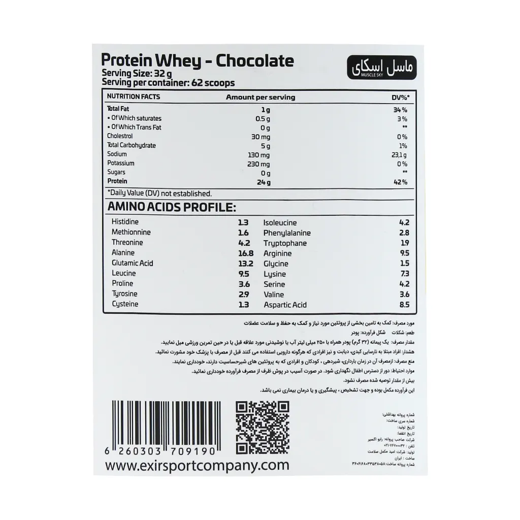 پودر پروتئین وی ماسل اسکای با فراهم کردن تمام اسید آمینههای ضروری، به ساخت عضلات جدید و رشد سریعتر عضلات کمک میکند.
