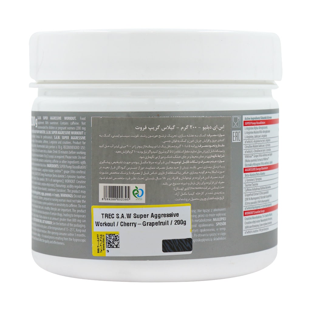 پودر اس ای دبلیو ترک نوتریشن یک مکمل پیش تمرینی قدرتمند است که با داشتن ترکیبات منحصر به فرد شامل آرژنین، سیترولین، بتا آلانین و کافئین به افزایش انرژی، تمرکز و استقامت در تمرینات شدید کمک میکند. همچنین با بهبود جریان خون و افزایش پمپاژ عضلانی به کاهش خستگی کمک میکند و ورزشکاران برای رسیدن به اهداف ورزشی خود میتوانند قبل از تمرین از این مکمل استفاده کنند. از دیگر فواید این مکمل، میتوان به تحریک ترشح هورمون رشد، تقویت سیستم ایمنی و تقویت قوای جنسی اشاره کرد. مکمل پمپ ترک تحت لیسانس شرکت ترک نوتریشن کشور لهستان، در ایران تولید و در کارخانه کیمیا مکمل آراد بسته بندی شده است. شایان ذکر است شما ورزشکار عزیز در کنار تمرینات و مصرف مکملهای بدنسازی مناسب، میتوانید اقدام به خرید مولتی ویتامین و استفاده منظم از آن نمایید تا از کمبودهای تغذیهای هنگام تمرینات سنگین جلوگیری نمایید.